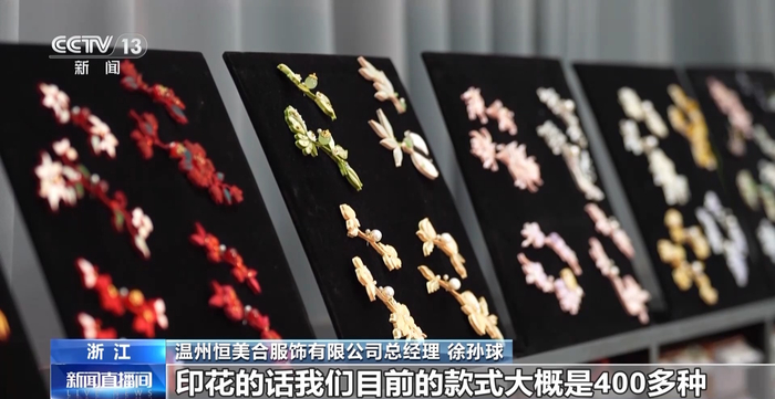 温州恒美合服饰有限公司总经理 徐孙球:印花目前的款式大概是400多种,我们争取明年再扩展到1000多个品。