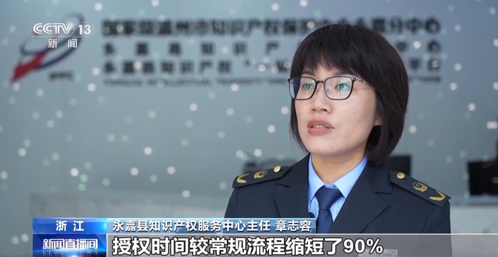 永嘉县知识产权服务中心主任 章志容:2025年3月份永嘉分中心正式投入运行,纽扣拉链产业2025年新增外观设计专利156件,授权时间较常规流程缩短了90%,企业的获得感也在逐步提升。