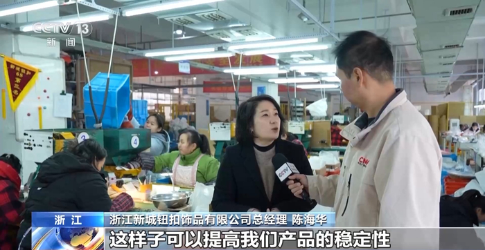 浙江新城钮扣饰品有限公司技术部负责人 陈锵:这是我们两个月前刚引进的一台AI新机器,所以现在我们要想办法多引进一些自动化设备,做到更加高效 。
