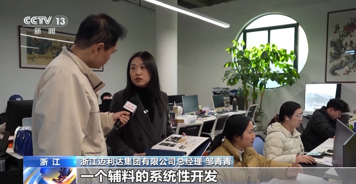 浙江迈利达集团有限公司总经理 邹青青:我们现在其实是在做一个辅料的系统性开发,我们会给客户做一些定制性的服务,其实就是提高我们的竞争力,所以对我们来说更加有优势。